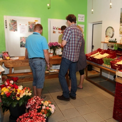 Sortiment: Spargel, Rosen Verkauf im Hofladen