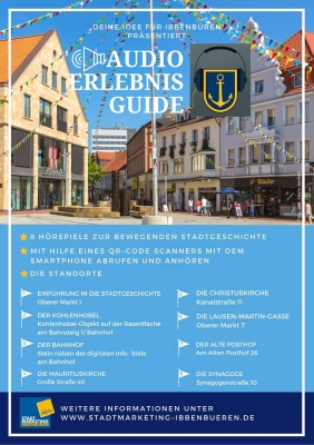 Der Audioerlebnispfad stellt mit insgesamt acht Hörspielen in sehr detaillierter und aufwendiger Art und Weise ausgewählte Orte und Menschen der Ibbenbürener (Stadt-) Geschichte vor. Ganz der Ibbenbürener Bergbautradition verbunden gibt es ein Hörspiel rund um das Thema Bergbau. Darüber hinaus finden sich auch Hörspiele über den Ibbenbürener Metzgermeister Martin Lause, der Christus- und der Mauritiuskirche und über die ehemalige Synagoge. Beschäftigen sich alle Hörspiele mit der Vergangenheit, so ist die das Abhören der Hörspiele sehr modern und auch sehr einfach: An den acht „Stationen“ des Audioerlebnispfads sind Plexiglastafeln mit QR-Codes befestigt. Du hältst einfach dein Smartphone vor den Code, drückst auf „Start“ und los geht’s! Tauche also mit neuester Technik in die außergewöhnlich aufbereitete Stadtgeschichte Ibbenbürens ein!
